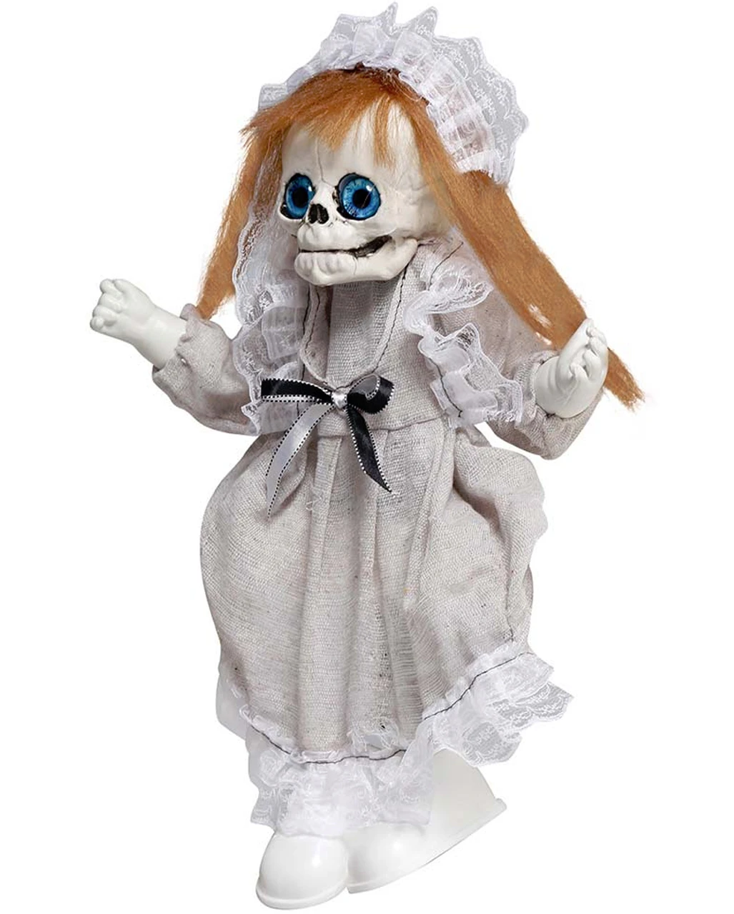 Das Gartenstecker Skelett Püppchen gibt deinem Haus eine schaurigen Touch. Ihre blauen Augen funkeln so schön und das Kleidchen sieht wirklich sehr adrett aus. Wie hypnotisch wirken sie auf die vorbeiziehenden Heerscharen an Geistern und Vampiren. Mal sehen, ob ihnen das zum Verhängnis wird. Setz das liebliche Deko Horror Püppchen in den Blumentopf, auf den Deko Kürbis oder zwischen die Rosensträucher. Ihren lieblich-schaurigen Anblick werden deine Partygäste so schnell sicher nicht vergessen.