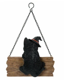 Putziges Hexen Kätzchen mit Hut als Halloween Türdeko