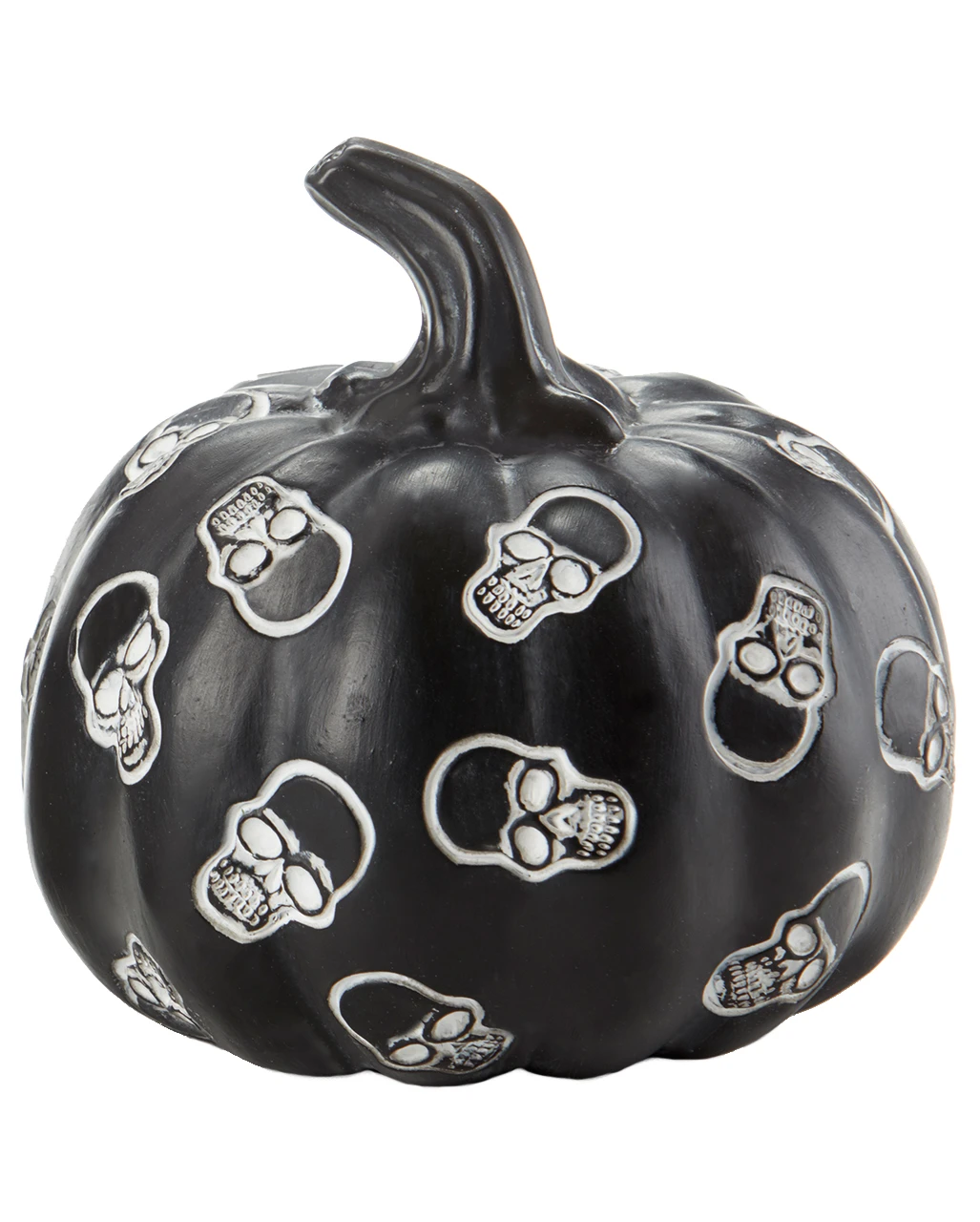 - Schwarzer Polyresin Gothic Kürbis mit Totenschädeln