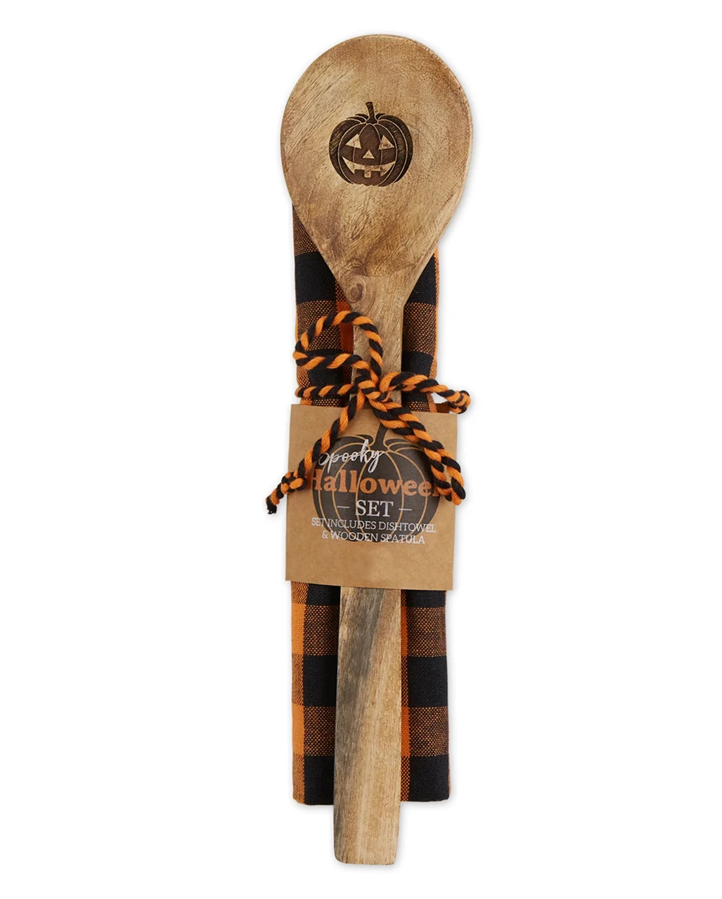 Kürbis Motiv Holzlöffel & Geschirrtuch Set