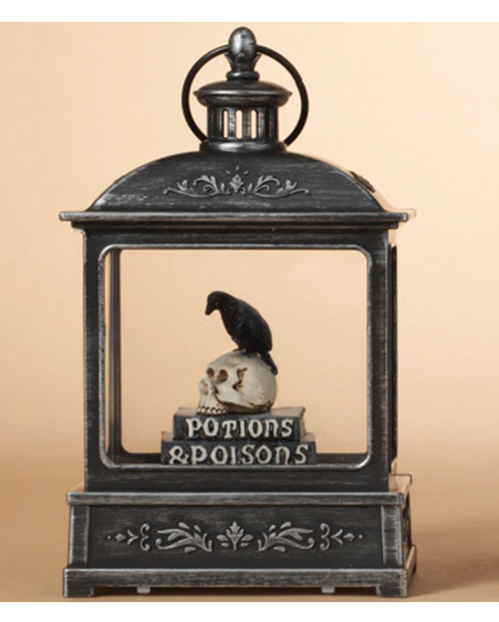 Unsere leuchtende Wasserkugel Laterne „Tränke & Gifte“ verleiht deinem Reich ein spooky Ambiente. Jeder, der dein Zuhause betritt, trifft auf magische Bücher, mystische Symbole und schwarze Krähen. Diese gruselige Laterne mit Licht beinhaltet einen Stapel Zauberbücher, auf denen ein paar listige Totenschädel und ein garstiger Rabe sitzen. Platziere diese leuchtende Halloween Deko auf dem Tisch, der Fensterbank oder im Treppenhaus.
