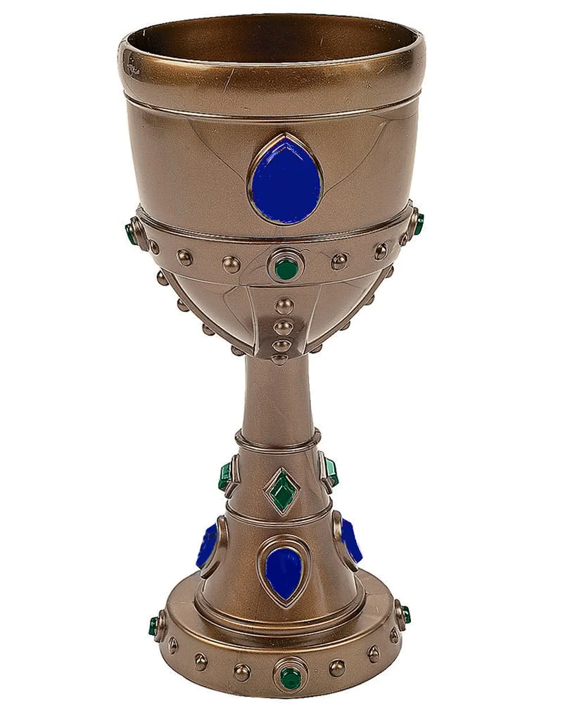 Der Mittelalter Königskelch ist einem Kelch aus dem Mittelalter nachempfunden. Bronzefarben und mit grünen und blauen Steinen aus Kunststoff verziert, darf dieser Trinkbecher auf keiner Mittelalterparty fehlen! Wenn du eine düstere Variante bevorzugst haben wir das Weinglas Skeletthand oder den Weinglas mit silberner Rose und Totenkopf für dich im Sortiment!