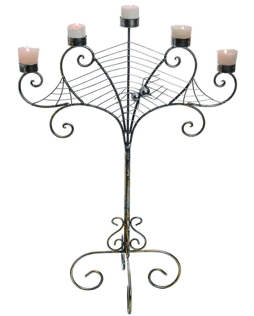 Lieferumfang: 1 x Silber-goldener Metall Spinnweben Kerzenständer