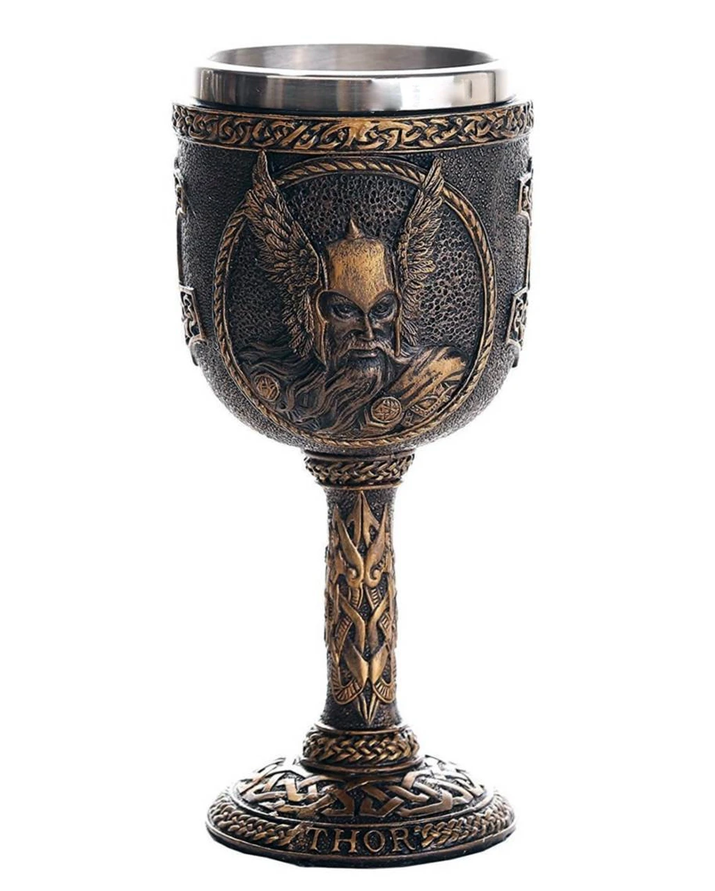 Dekoriere mit dem hochwertigen Thor Wikinger Kelch deine festliche Tafel im Stile der großen Halle der Asen und Wanen! Der Fantasy Weinkelch in nordischer Optik eignet sich wunderbar als Deko für Halloween, Gothic Events und Fantasy Mottopartys sowie als Geschenkartikel für Mittelalter Fans!